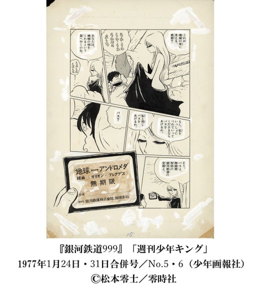 本展では『銀河鉄道999』第1話の貴重な原画をはじめ、「宇宙」「女性」「メカ」といった松本零士の作品を特徴付ける要素が、緻密な描画技術と巧みなストーリー構成によって、どのように形作られていったのかを探ります。