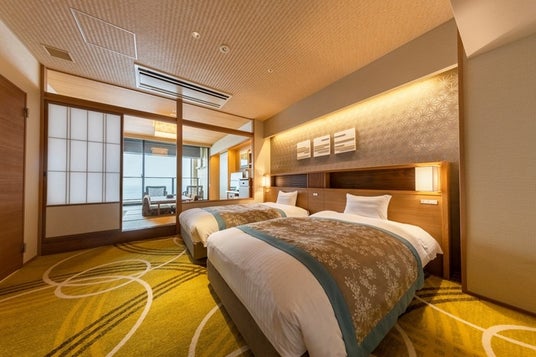 (富士見亭客室一例) =千葉県民の日 三日月感謝デー!実施内容= ◆三日月感謝デー特別プラン =先着400名様限定= 日帰り温泉/スパチケットにランチビュッフェが付いた、とてもお得なセット 入場料+若汐亭ランチビュッフェ(タオルセット&館内着付き)