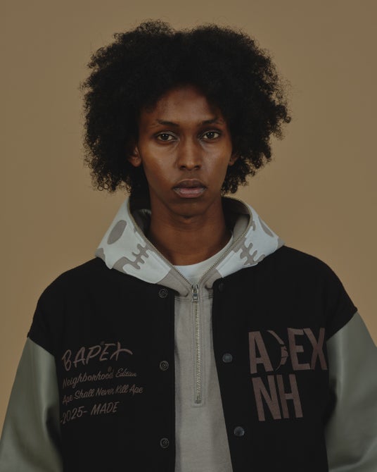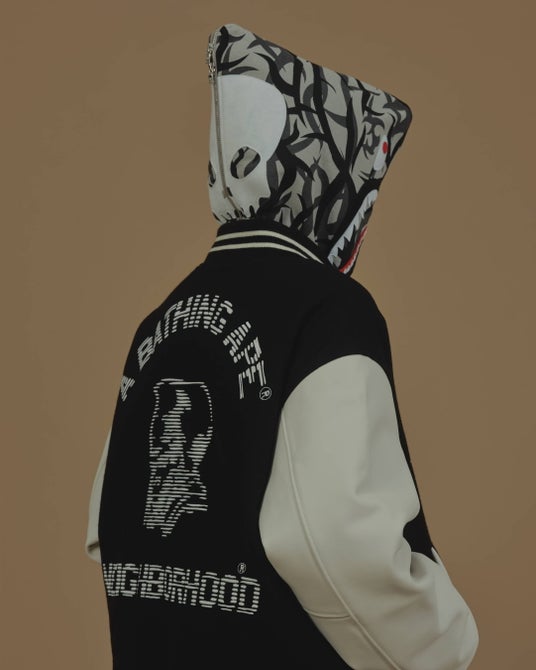 東京・原宿をルーツとする両ブランドのコラボレートコレクションは、スノーボードジャケット、バーシティジャケット、Tシャツ、ロングスリーブTシャツ、クルーネックスウェット、ハーフジップフーディー、トラックパンツ、キャップ、インセンスチャンバー(お香立て)、チェア、シューズと、アパレルから雑貨までがフルラインアップします。BAPE(R)︎を代表するアーカイブアイテムやモチーフをNEIGHBORHOOD(R)が独自の解釈でアレンジ。さらに、2000年に登場したBAPE(R)︎のオリジナルカモフラージュ柄、“TRIAL CAMO(トライアルカモ)”をコラボレーションのためにモノトーンで再構築し、特別に復刻します。