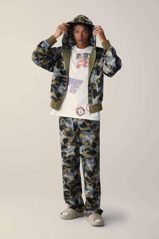 MULTI PIXEL CAMO、GLITCH WOODLAND CAMOに加え、STAのオーバープリントを施した1ST CAMOや、BAPE(R)︎ LEGACYシリーズから登場するレトロなバーシティジャケット、BAPEMAN-Xフーディーがラインアップします。