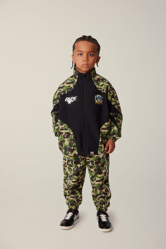 BABY MILO(R)やSTAモチーフをあしらったフットボールインスパイアのジャージは、BAPE(R) Kidsらしい定番スタイルとして、日常使いにも最適なアイテムです。