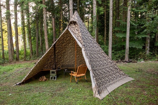 難燃ミリタリーファブリック“ブレイズ シールド”を使用したテントは、薪ストーブの煙突を通すチムニーホールと換気のための大き目のベンチレーション、スカートを装備し、1年を通して活躍。サイドフラップを張り出せば、日よけとしても。本体を丸めて折り畳めばコンパクトな形状になるので、持ち運びにも便利です。