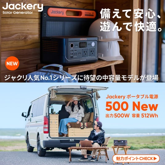 Jackery公式オンラインストア:https://www.jackery.jp/ Jackery公式Amazon店:https://www.amazon.co.jp/jackeryjapan/ Jackery公式楽天市場店:https://item.rakuten.co.jp/jackery-japan/ Jackery公式Yahoo!ショッピング店:https://store.shopping.yahoo.co.jp/jackery-japan/ ※各店舗により予告なく変更または終了する場合がございますので、あらかじめご了承ください。■Jackeryについて