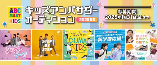 株式会社エービーシー・マート(本社:東京都渋谷区、代表取締役社長:野口実)は、「キッズアンバサダーオーディション 2025年春夏」を2024年12月1日(日)より開催いたします。今年も “ダンス部門” を設け、多くのお子様に活躍の機会の創出を目指しています。