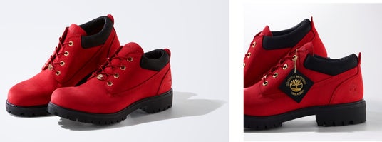 本モデルは、どんなスタイルにも合わせやすくスタイリッシュなブラックと、ABC-MARTのコーポレートカラーであるレッドの2色展開です。特別なゴールドのハトメを採用し、洗練されたディテールを加えています。さらに、Timberlandのレザー・ワーキング・グループに認証された工場で生産されたWPプレミアムレザーを使用し、高い防水性と耐久性を維持しながら、ラグジュアリーな仕上がりを実現しています。