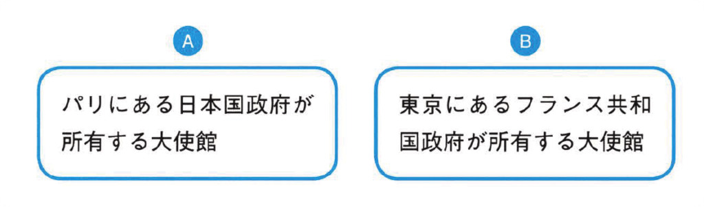 もしAならば「在パリ日本大使館」、Bならば「在東京フランス大使館」と書けば、誤解されるおそれはなくなります。