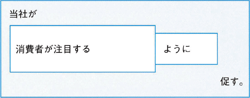 OK2の「消費者に注目させる」は、消費者が注目するように「当社」が促すという意味で、図式化すると下図のようになります。こうすれば、「注目する」のは「消費者」、消費者が注目するように「促す」のは「当社」という関係が明確になります。