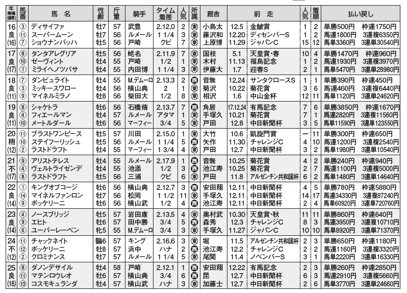 ①人気は[3・3・0・4]。22年から3年連続で馬券圏外が続いたが、25年1着で復調の兆し。