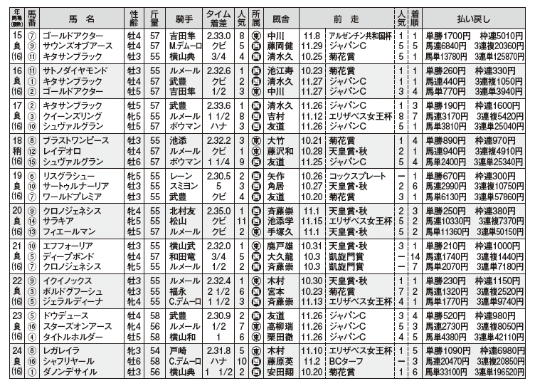 ①~③人気の総崩れは15年だけで、3着以内30頭中17頭を占める。