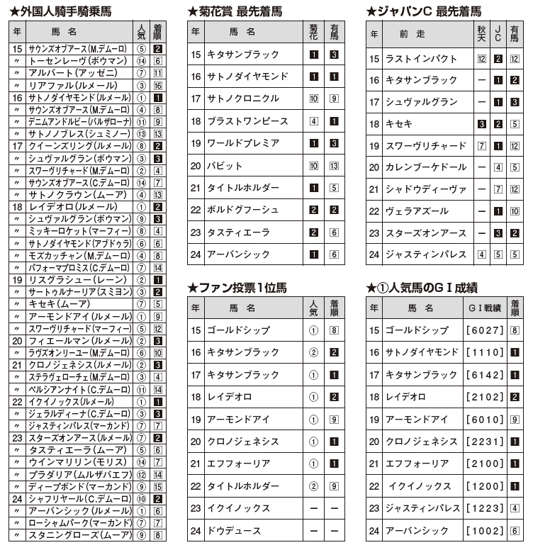 【ジャパンC組】①前走着順②GⅠ実績③年齢!3つのファクターで絞り込み