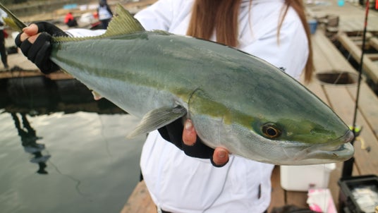 海上釣り堀はイケスに放流された魚を釣るので、まずは釣行する釣り堀で現在、何が放流されているのかを知ることから始まる。今回訪れた釣堀水宝ではマダイ、メジロ、ブリ、ハマチ、カンパチ、シマアジをメインにクエやイサギなど多彩な魚種が狙える。マダイは言わずと知れた魚の王様。雑食でダンゴやエビ、鶏のササミの他、切り身でも釣れる不動のメインターゲット。青物と呼ばれるメジロやカンパチはフィッシュイーターと呼ばれる回遊魚。基本として生きた小魚を好んで食べるため生きアジやウグイなどの他、冷凍の小魚なども使う。掛かればイケスの中を走り回る強烈な引きが魅力。シマアジも高級魚で脂が乗った白身が特徴。他の魚に比べて浅いタナを泳ぎ回るので、食い気が出ると姿が見え、釣りのタイミングが計りやすい。