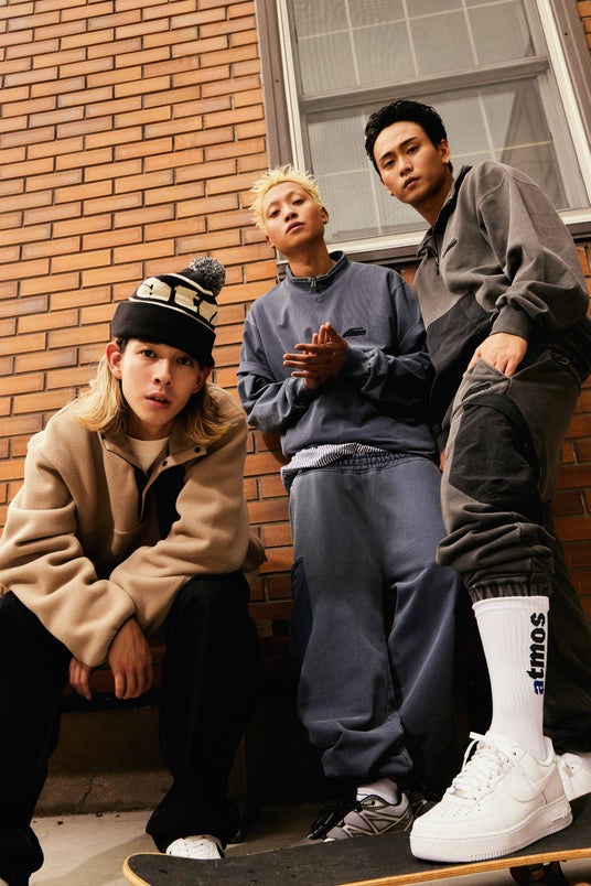Keyヴィジュアルには、SNSで話題の大人気オルタナティブヒップホップユニット「KOMOREBI」を起用。オンタイム、オフタイム共に仲間同士で楽しむ彼らの自然体なスタイルは、本コレクションのテーマである「HOBBY & FRIENDS」そのものであり、その姿を捉えたKeyヴィジュアルは音楽とストリートカルチャーの融合を象徴する仕上がりになっています。
