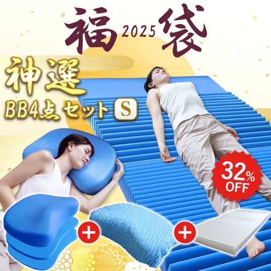 枕とマットレスがセットになった毎年人気の「神選BBセット」や、テレビでも取り上げられたことがあるマットレスピローミトラと専用カバーがセットになった「ミトラセット」などを始め、今年は新たに動く寝具エアテックシリーズが入った福袋を展開いたします。
