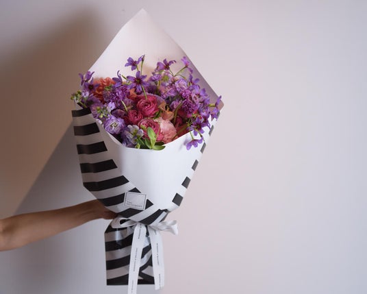 花の香りと彩りを楽しめる、心を込めて束ねたブーケ。上品で華やかなデザインは、お部屋に優しく彩りを添えます。価格:15,000円(税込16,500円)