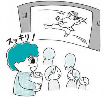 ネガティブな感情はとても内向きのもので、放っておくと煮詰まる一方です。そこで、アクション映画の登場人物に自分を投影し、スクリーンの中で代わりに暴れてもらうことで、負のエネルギーを放出するのです。気分を変えたいときは、ぜひ映画の力を借りてみてください。
