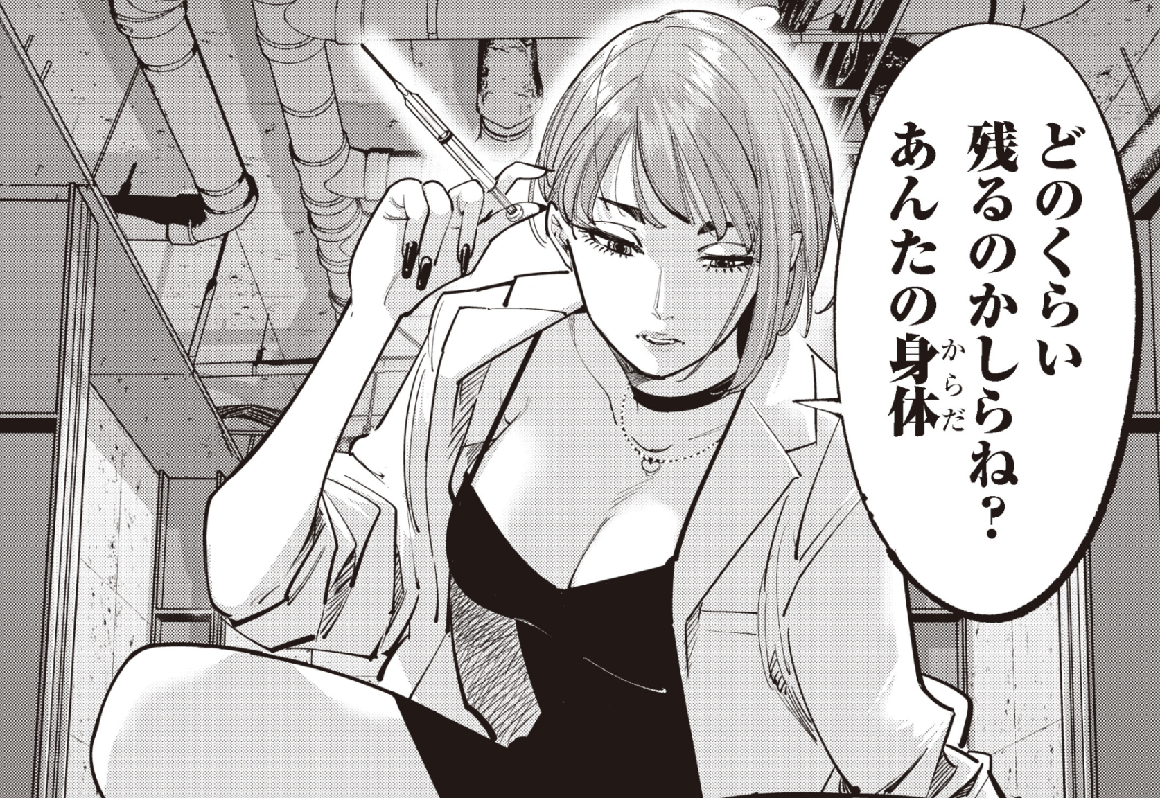 そんな細川を事故に見せかけて拉致したのは、綾知春という青年。目を覚ました細川の前に現れたのは、白衣を着た謎の美女でした。彼女の口から告げられたのは「もう二度と(性犯罪が)出来ないようにしといたから」という衝撃の事実。 さらに彼女は、細川に「アンタを売り捌く女よ」と冷酷に告げます。なんと、彼の「眼」はすでに買い手が決まっており、売買されることになっていたのです。