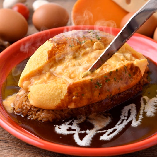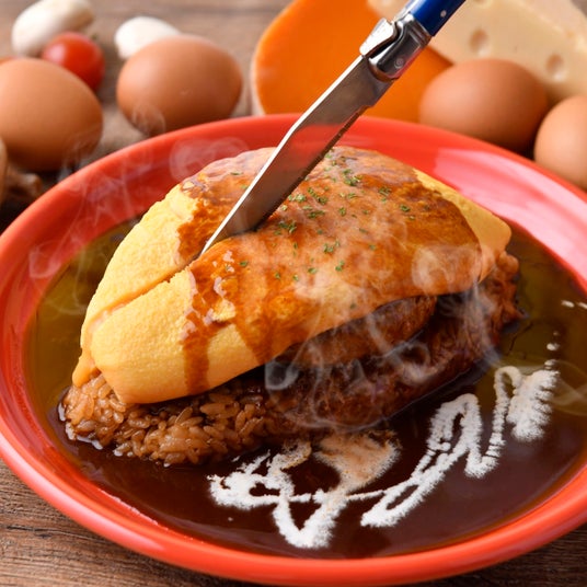 オムレツをナイフで切ることで完成する、今話題の「ぱっかーんオムライス」が楽しめるお店です。