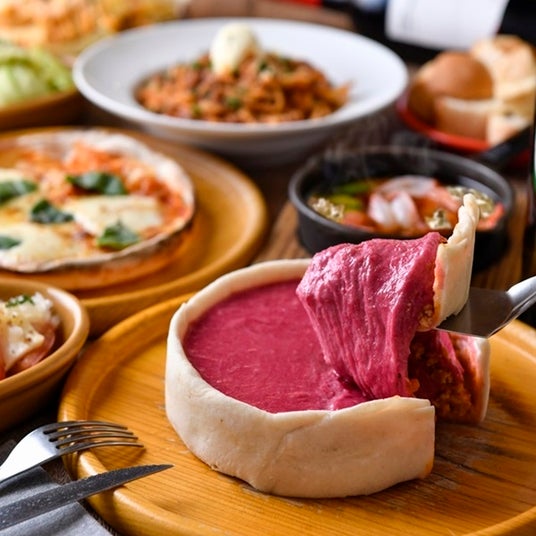 看板メニューの「オムライス」の他、器の外まで溢れんばかりのチーズと溶岩のようなミートソースに視線も釘付けになってしまう話題の「溶岩チーズハンバーグミートパスタ」や、カットした瞬間の溢れ出るチーズが圧巻の「シカゴピザ」など、思わず動画や写真を撮りたくなるようなワクワクする演出にこだわった料理をご提供いたします。