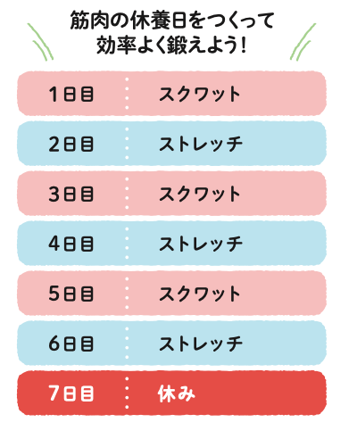 「毎日やらない」が正解!ストレッチとスクワットを交互に行う