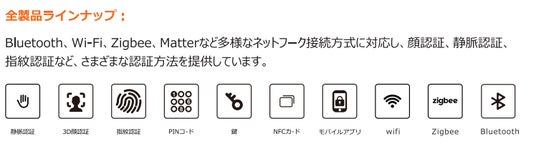 顔認証、指紋認証、パスコード、スマートフォンアプリなど複数の解錠手段に対応し、利便性と安全性の両立を図っています。