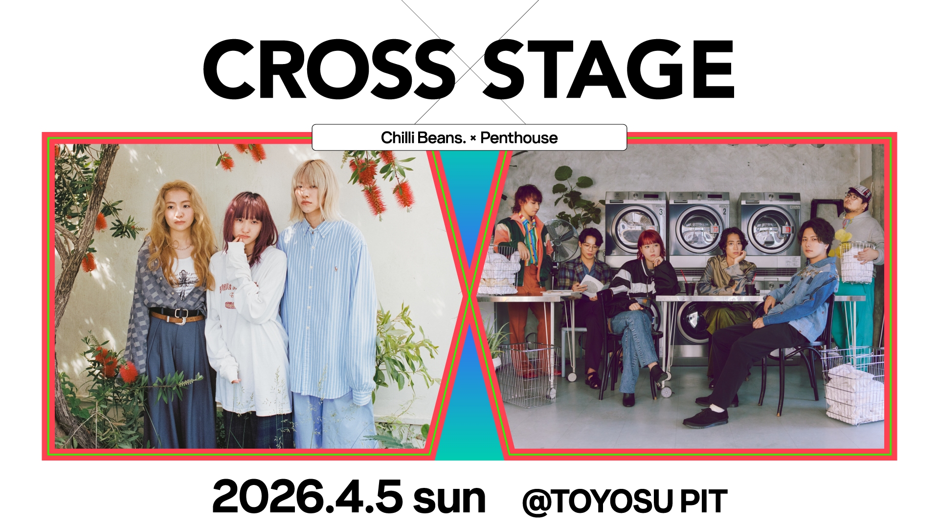 株式会社エニーはぴあ株式会社と共同で、世界最大級のユース向け音楽&エンターテインメント・チャンネル「MTV」の協力のもと、4月5日(日)に豊洲PITでライブイベント「Cross-stage Vol.2: Chilli Beans. × Penthouse」を開催いたします。