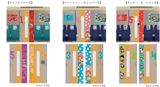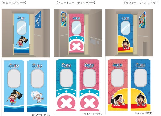 ・各駅発着時の車内チャイム・メロディに、テレビアニメ「ONE PIECE」の初代オープニングテーマ「ウィーアー!」を使用し、「ONE PIECE」の世界観を音声にて表現します。