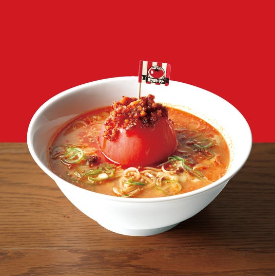スパイシーな担々麺も、トマトとチーズが入ってマイルドな味わいに。一度食べると忘れられない、インパクト大の美味しさです。湯むきしたまるごとトマトは少しずつ崩しながらお召し上がりください。