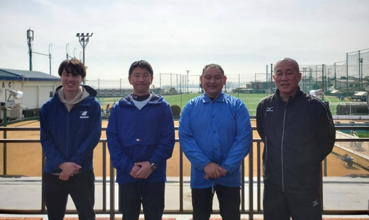 写真左から オフェンスコーディネーター 品川、ヘッドコーチ 飛田、ディフェンスコーディネーター 新宅、チームアドバイザー 市川
