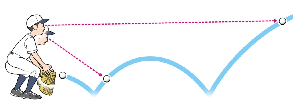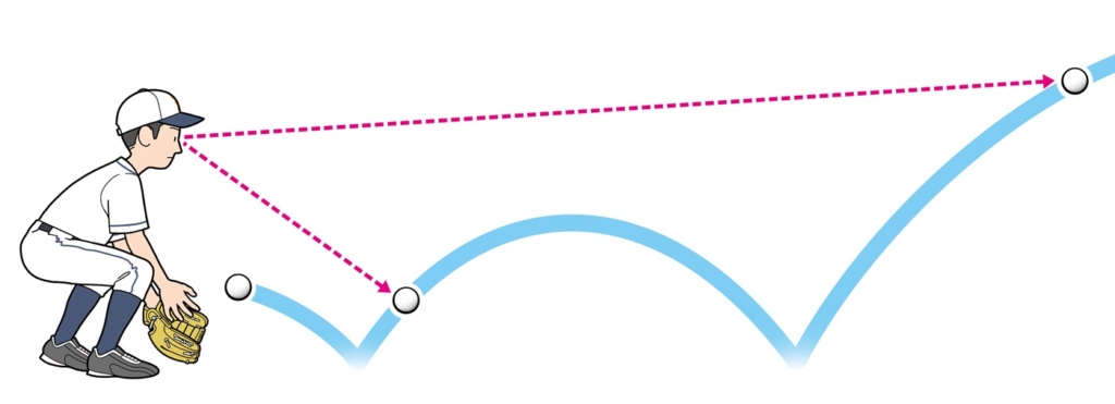 ゴロを捕る際、まず必要なのは「距離(バウンド)を合わせること」です。すなわち、目の距離感(遠近感)が大切になります。