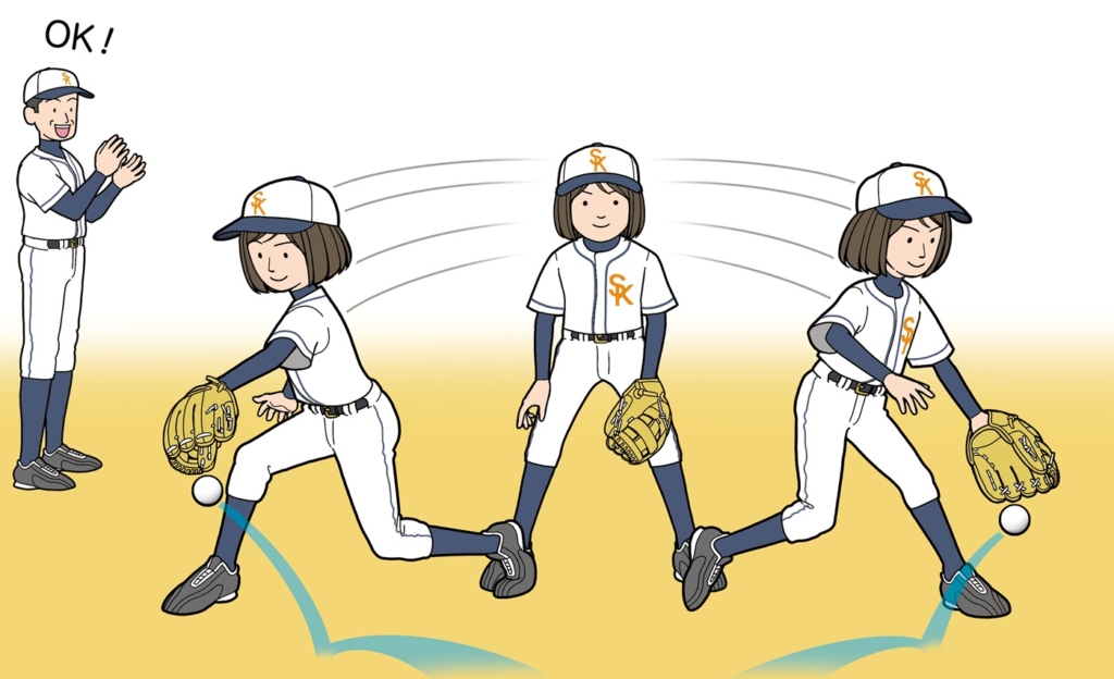 少年野球では、「正面に入れ」は「自分の身体の左前でボールを捕りにいくと正面に入れるようになる」と言葉を置き換えてみましょう。