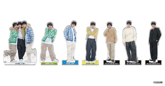 展開グッズ:アクリルスタンド(全7種)、アクリルキーホルダー(全6種)、缶バッジ(全5種)、クリアカード(全6種)、クッション(全1種)、トートバッグ(全1種)
