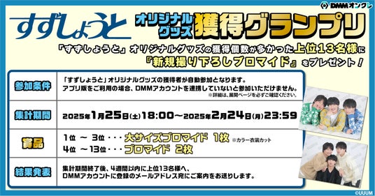 「すずしょうと」グッズの獲得個数が多かった方上位13名に、新規撮り下ろしブロマイドをプレゼントする「獲得グランプリ」を開催します。