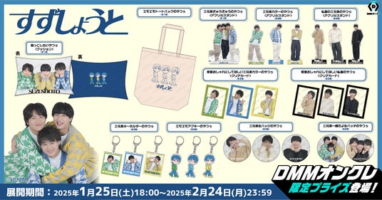 合同会社DMM.com(本社:東京都港区、会長 兼 CEO亀山敬司、https://dmm-corp.com/ 以下DMM )が提供するオンラインクレーンゲームサービス「DMMオンクレ」は、1月25日(土)18:00から期間限定で、3兄弟動画クリエイター「すずしょうと」のDMMオンクレ限定グッズを展開いたします。