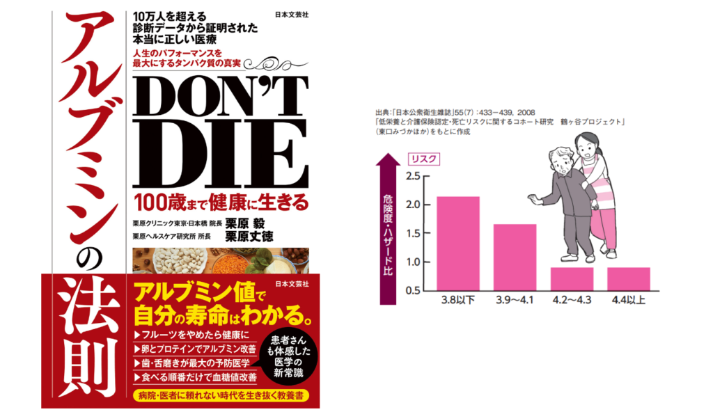 【出典】『DON’T DIE 100歳まで健康に生きるアルブミンの法則』著:栗原毅/栗原丈徳