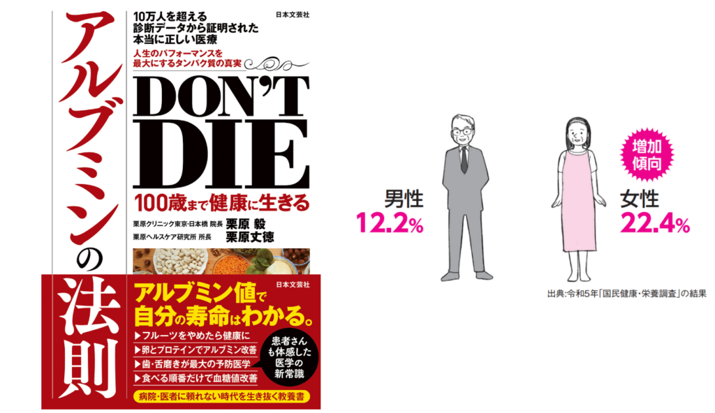 【出典】『DON’T DIE 100歳まで健康に生きるアルブミンの法則』著:栗原毅/栗原丈徳