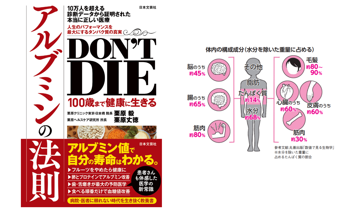 【出典】『DON’T DIE 100歳まで健康に生きるアルブミンの法則』著:栗原毅/栗原丈徳