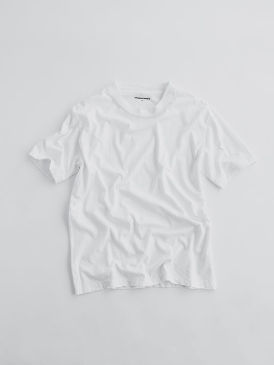 約30mmの太めリブが特徴。首元がすっきり見えるクルーネックTシャツ。