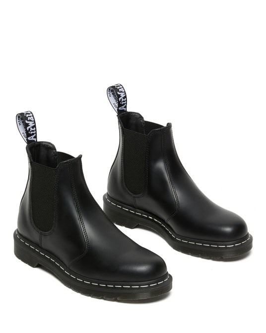 ホワイトステッチが施されたモノクロームのブーツには、ドクターマーチンの伝統が深く根付いている。普遍的なアイコンで ある、1460 8 ホールブーツや 1461 3 ホールシューズ、2976 チェルシーブーツをはじめ、日本限定の特別な 2 型を含めたコレクション展開。