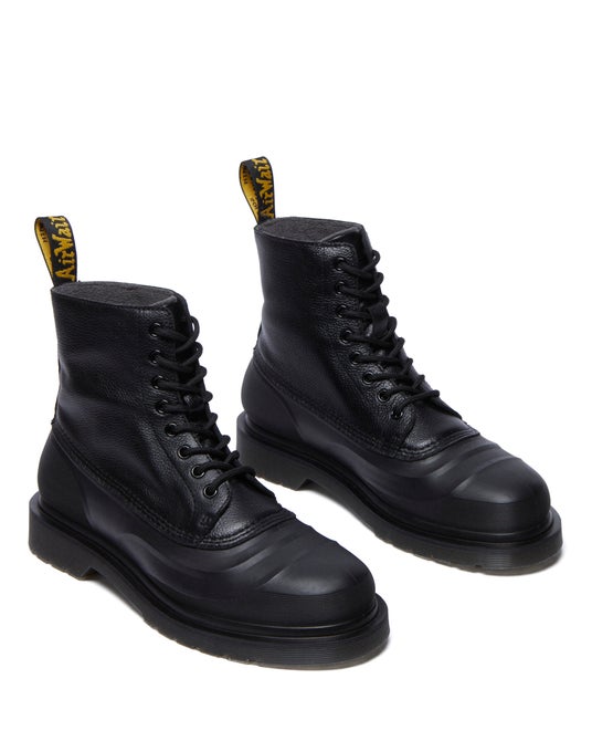 1460 Sub Boot: 雨天に対応するために再設計された 1460 8 ホールブーツの新しい構造は、ドクターマーチンのワ ーキングブーツの伝統と精神を受け継ぎながら、先進的な機能を備えている。防水ベースアウトソールとドクターマー チンのバウンシングソールという名前の由来であるエアクッションソールは、ピューリタンステッチラインまで補強さ れ、耐水性を劇的に向上。高い通気性と耐水性を持つニューランズレザーとフリースライニングを組み合わせ、保護と 快適さを両立させている。ドクターマーチンの象徴的な 1460 8 ホールブーツのシルエットとヒールループを備え、オ リジンは劇的な進化を遂げている。