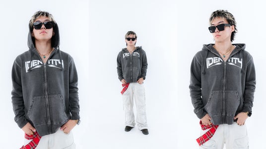 MODEL:Rhyme (RHT.) 着用:IDENTITY LOGO ZIP HOODIE Lサイズ/IDENTITY vol.2 LIMITED T-SHIRT Lサイズ