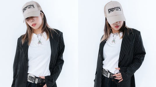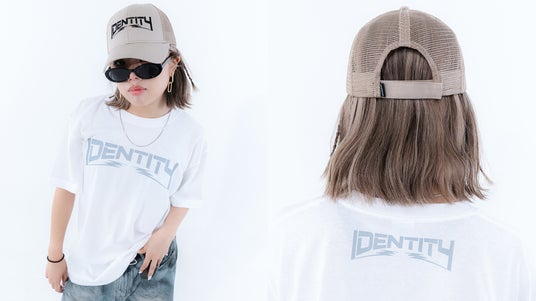 MODEL:Tmiho 着用:IDENTITY vol.2 LIMITED T-SHIRT Lサイズ/IDENTITY LOGO MESH CAP カーキ