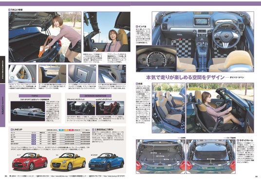 実用的な軽ワゴンだけでなく、コペンのようなスポーツカーも紹介しています。内装の詳細写真やラゲッジ、使い勝手など、横比較でチェックすることができます。