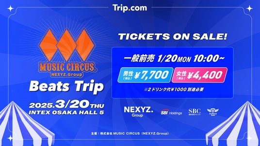株式会社MUSIC CIRCUS(東京都渋谷区)は、2025年3月20日(木・祝)にインテックス大阪5号館で開催される音楽フェスティバル「MUSIC CIRCUS -Beats Trip-」の第2弾出演アーティストを発表いたします。