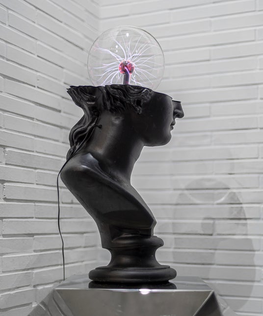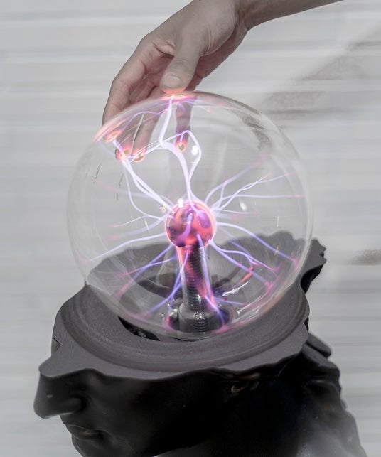 ガラス球に手を近づけると、手が避雷針の役目をして、その部分に高周波の電気が集まり、それに伴って光の流れが集中してきます。