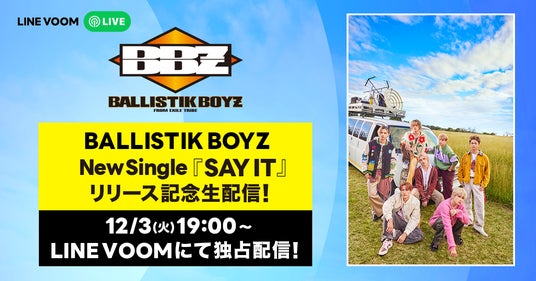 EXILE TRIBE初のメンバー全員がマイクを持ち、ダンス、ボーカル、ラップを披露するボーイズグループ、BALLISTIK BOYZが「LINE VOOM」のライブ配信に初登場します。本配信は、12月4日(水)に控えたNew Single『SAY IT』のリリースを記念して開催され、新曲にまつわるトークやゲームに挑戦するなど内容満載の1時間をお届けします。