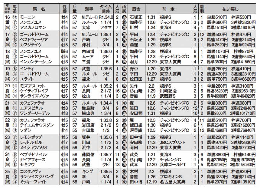 また連対数は①~⑤人気が17頭に対して、⑥人気以下がわずか3頭。数字的には人気薄が頼りなく、必然的に穴党受難のレースといえるのだが、①②人気で決まった年は2回だけ。