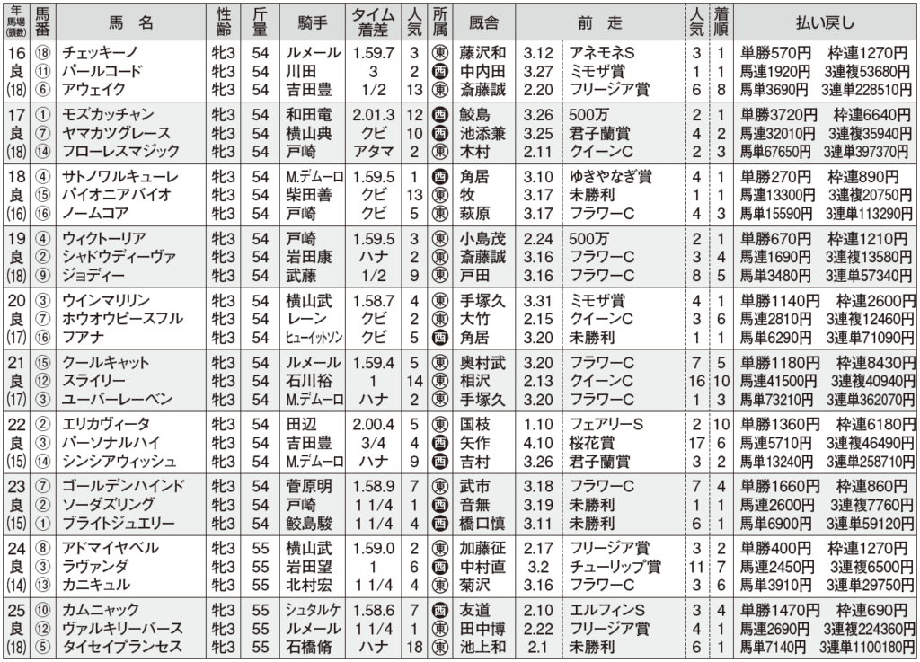 フローラS 過去10年のデータ