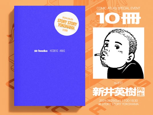 先生を形づくった本や、年齢や経験を重ね更新し続けていく中で、再発見があったものや心が動いた本を「10冊」選書いただきます。それぞれの本と先生の物語についてお話をお聴きするイベントです。STORY STORY YOKOHAMAでは、新井先生の選書と連動した特設コーナーも設置予定!また、トーク内容の一部は後日「COMIC ATLAS」でオンエアします。