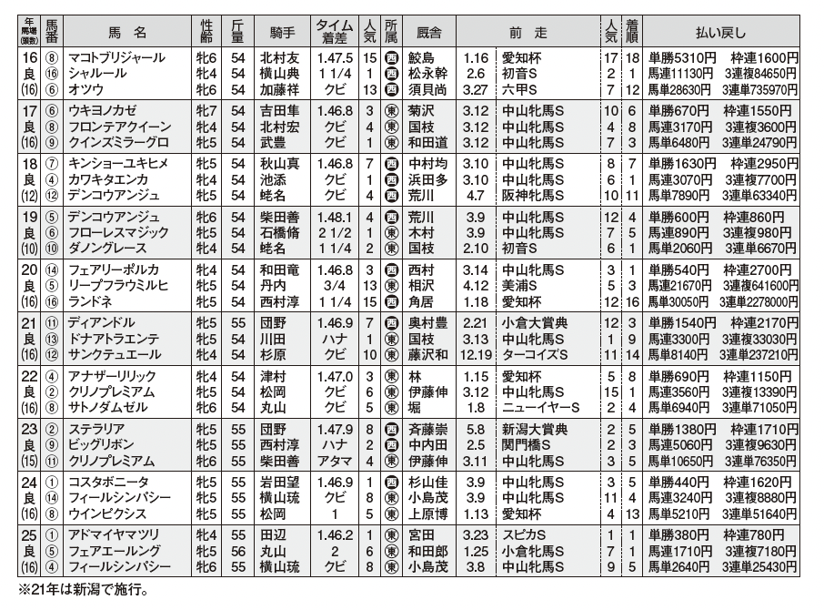福島牝馬ステークス 過去10年のデータ