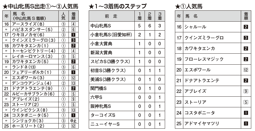【中山牝馬S組】近年は前走掲示板の馬が連続好走